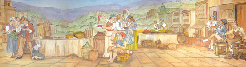 The mural along the full wall of DiMaggio’s dining room illustrates the Old World conviviality, charm and quality fare of Bari, Italy. The mural reminds us daily of the tradition and goals of the restaurant.